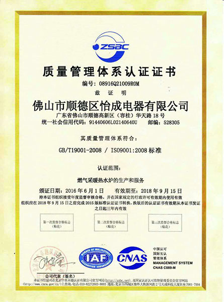 佛山市順德區怡成電器有限公司屬下有八部一室,三大車間,工程技術人員和管理人才100多人,一大批現代化五金生產設備,自動噴涂生產線和功能齊全的現代化生產線,公司為做好壁掛爐產品,從一開始就選用高、精、尖的生產設備和檢測設備和自動翻版檢測設備。連續配氣系統設備,NOX綜合測試裝置,五合一全電腦綜合測試設備儀器,測試的準確性、可靠性及耐久試驗都在同行具有水平。